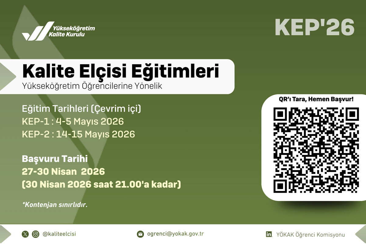 Yükseköğretim Öğrencilerine Yönelik Kalite Elçisi Eğitim Programı (KEP’26) Başvuruları Başladı